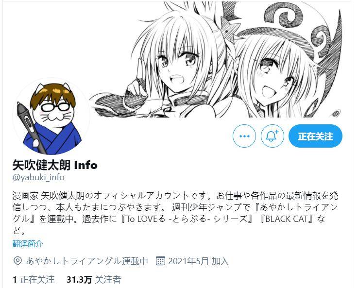 帳號注冊後發布了相關的解釋說明,表示會更新矢吹老師的工作進展,以及部分原稿插圖。並馬上發布了《To LOVE》《妖怪三角》《黑貓》的相關插畫。