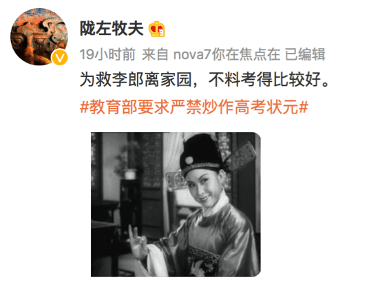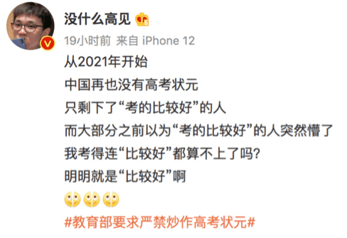 當然,這件事還有個大背景,就是今年校外培訓機構正迎來最強監管,北上廣深率先試點,禁止各種校外輔導。炒作高考狀元,作為機構製造教育焦慮的重要一環,才會被突然重錘。