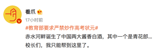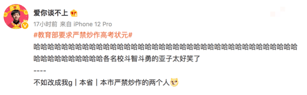 也有人建議,除了「考得比較好」這種語焉不詳的說法,還可以在通知發酵後,用「本省/本市嚴禁炒作的兩個人」來指代高考狀元。