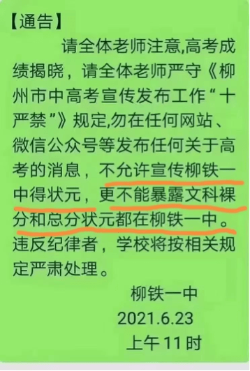 這和當年廣告限制極限詞何其相似,難怪有人給校長出主意,可以套用廣告的解決方案,比如「我校XX同學分數比第二名遙遙領先」,「更多一本升學率」等。