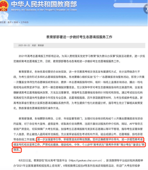 通知要求,嚴禁相關媒體、培訓機構、中學、個人炒作「高考狀元」「高考升學率」「高分考生」「復讀生」等信息。