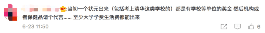 再說狀元本人,雖然也常有同學對各種炒作提出反對,但不可否認,更多人會因為社會各方對狀元的追捧而有超額獲益。