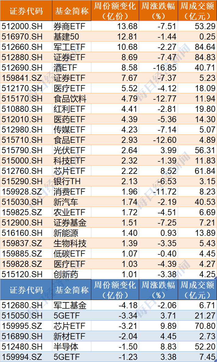 此外,還有證券ETF、酒ETF和醫療ETF等份額增加逾5億份。
