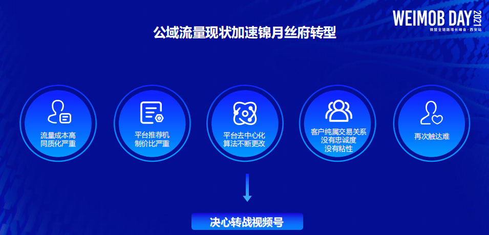 7月21日,2021微盟Weimob Day全鏈路增長峰會西安站上,微盟營運長尹世明表示,「信息分發已進入視頻時代,視頻號作為超級節點,加速了微信商業生態的內循環,催生了品牌、服務商、視頻號創作者、消費者共生的商業生態。」