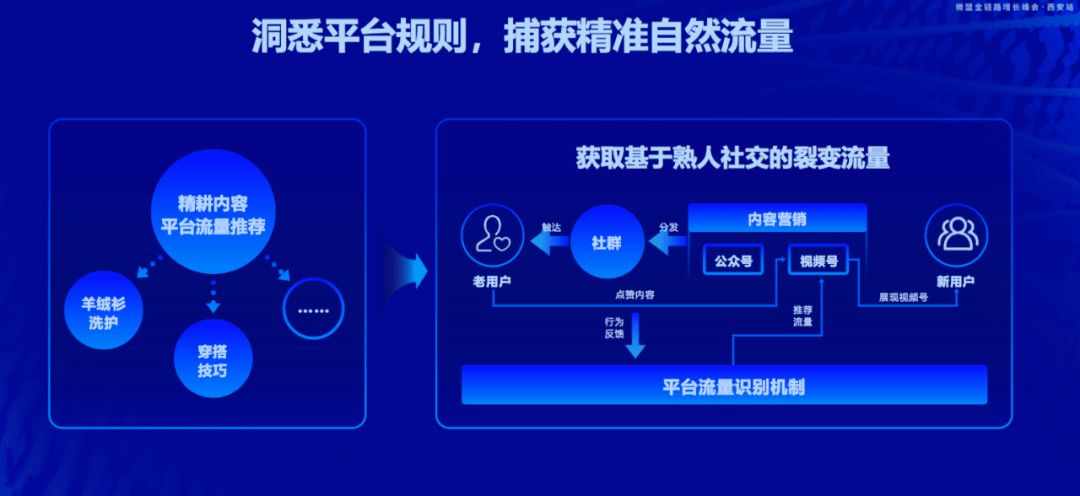 微盟是微信第三方服務商,也是較早推出視頻號工具和運營服務的服務商。基於這樣的背景,微盟對視頻號「社交-算法」分發機制有極深的理解和洞察。對此,微盟營運長尹世明指出,視頻號流量分發的核心是要做好「公私域聯動」。