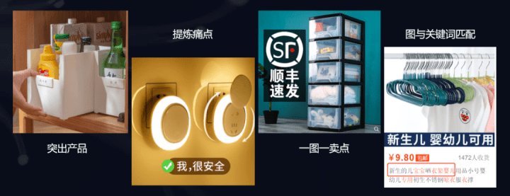 接下來我們具體闡述高點擊率主圖的製作思路。首先,我們需要改變美工和運營的一個根深蒂固的觀念,美工習慣性的從審美角度去製作一張漂亮或高大上的圖片,這本無可厚非。但美圖和好圖還是有本質區別的,並不是高端大氣上檔次的圖才是好圖,只有和你的產品以及它背後的主打進店關鍵詞(成交方向詞)相匹配、相貼切的圖才是真正的好圖,也就是我們常說的詞-圖-人的匹配。這就需要運營清晰的告訴美工,產品的屬性特點及成交方向、主打關鍵詞,然後以此為基點去創意圖片。