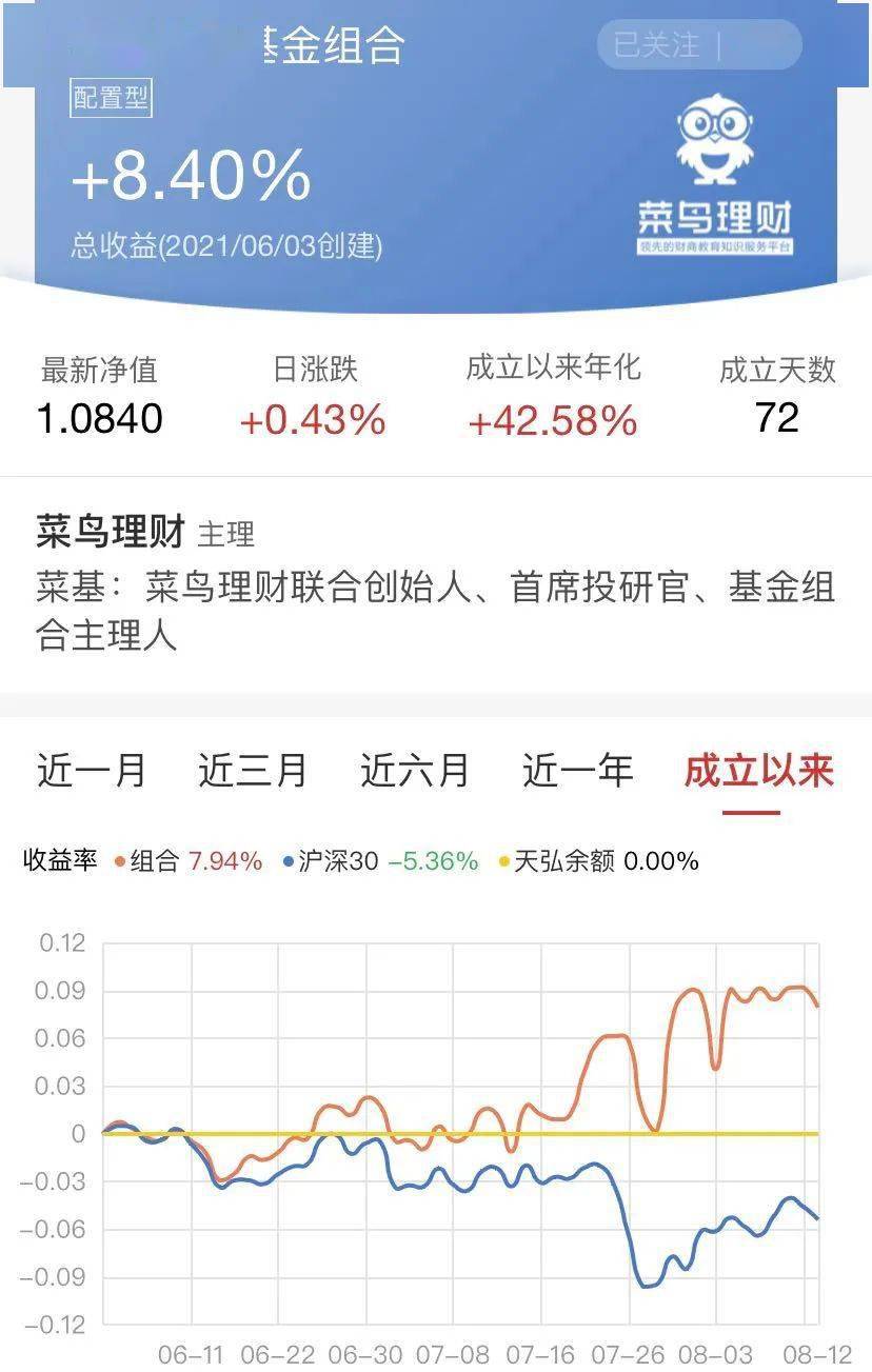 2019年4月15日,菜基實盤組合正式成立,總倉位10萬領投,按照總持有成本計算,最新倉位約 75%。