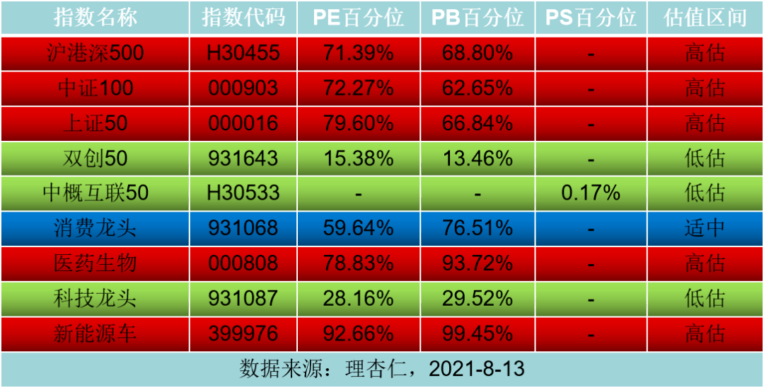 跟蹤指數估值分析: