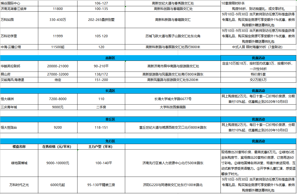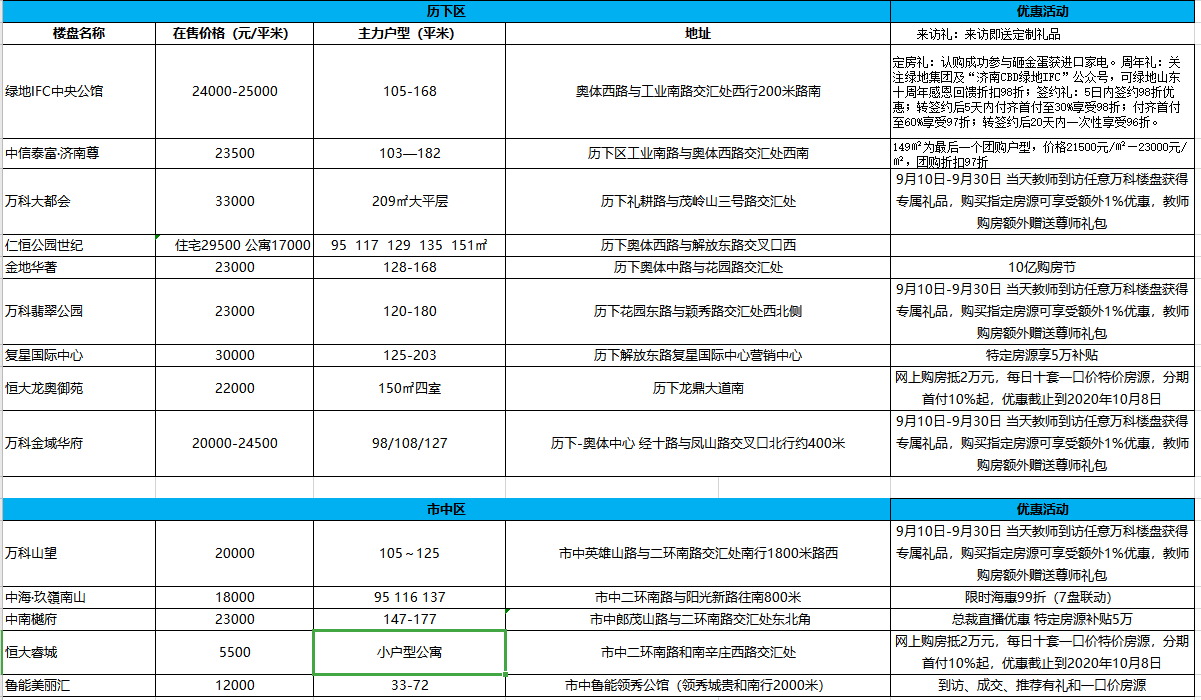 話不多說,先來看看我們整理的金九部分樓盤優惠信息匯總。