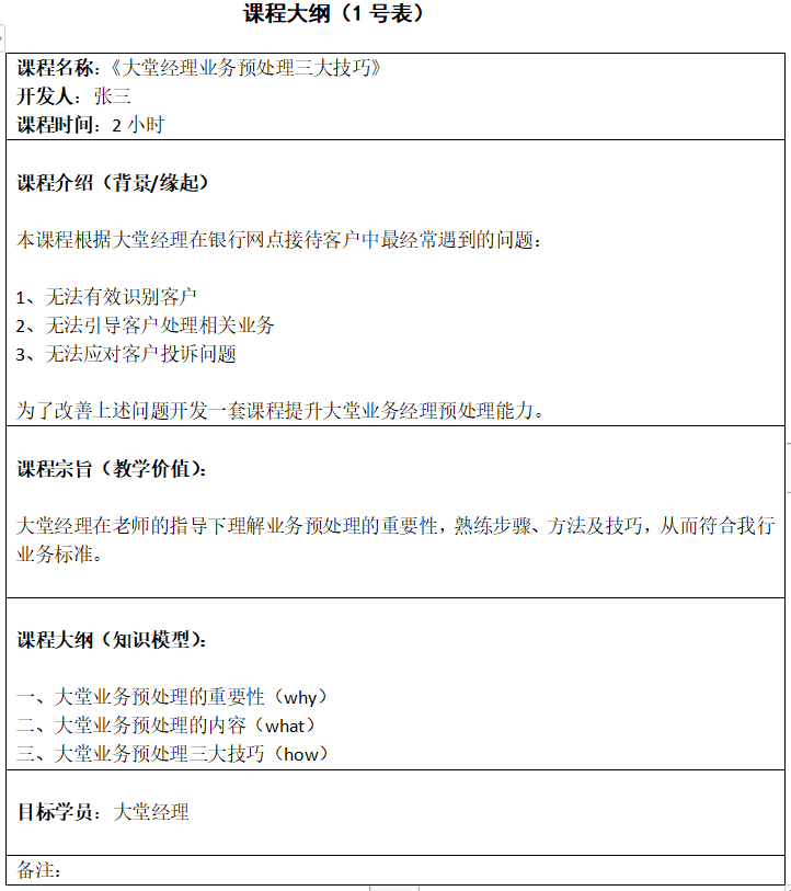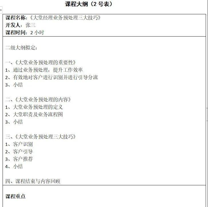 一級大綱包含了基本信息、課程介紹、課程課宗旨、課程大綱等幾個方面。一級課程大綱經典結構包含了為什麼、是什麼、怎樣做,二級大綱只需在一級大綱上展開與詳述。