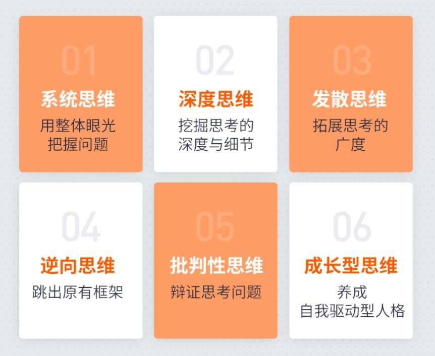 幫助學員清醒思考,明是非、辨真偽;高效思考,思周全,行有方;公正思考,心開闊、氣平和;平行思考,群體決策效率高。
