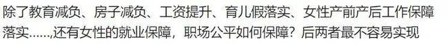 但這位女士又加了句,還有女性就業保障和職場公平。