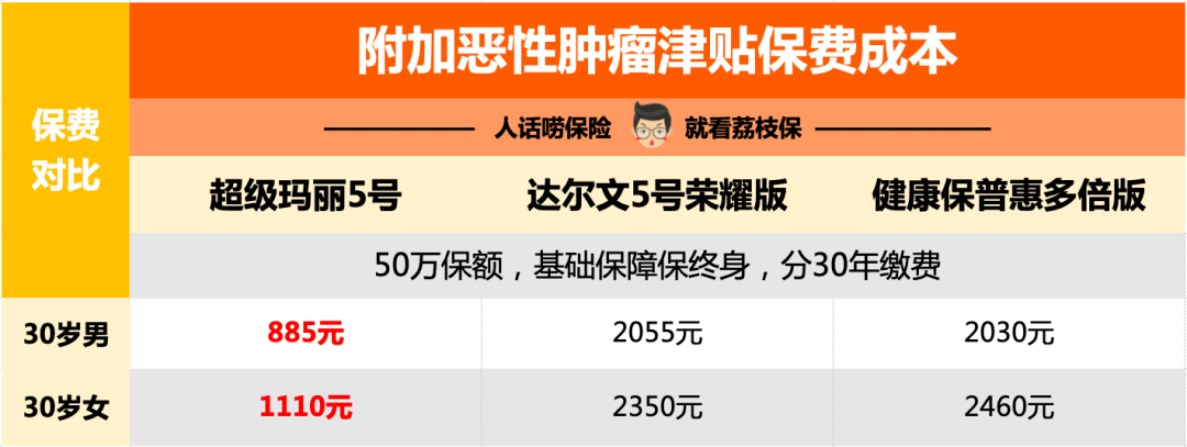 超級瑪麗5號附加惡性腫瘤津貼只需要加1千塊左右即可,而另外兩個竟然要加2千…