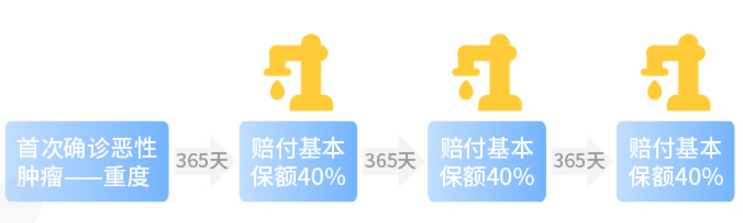 簡單來說就是如果不幸確診得了癌症,每隔一年,能多拿40%的保額。