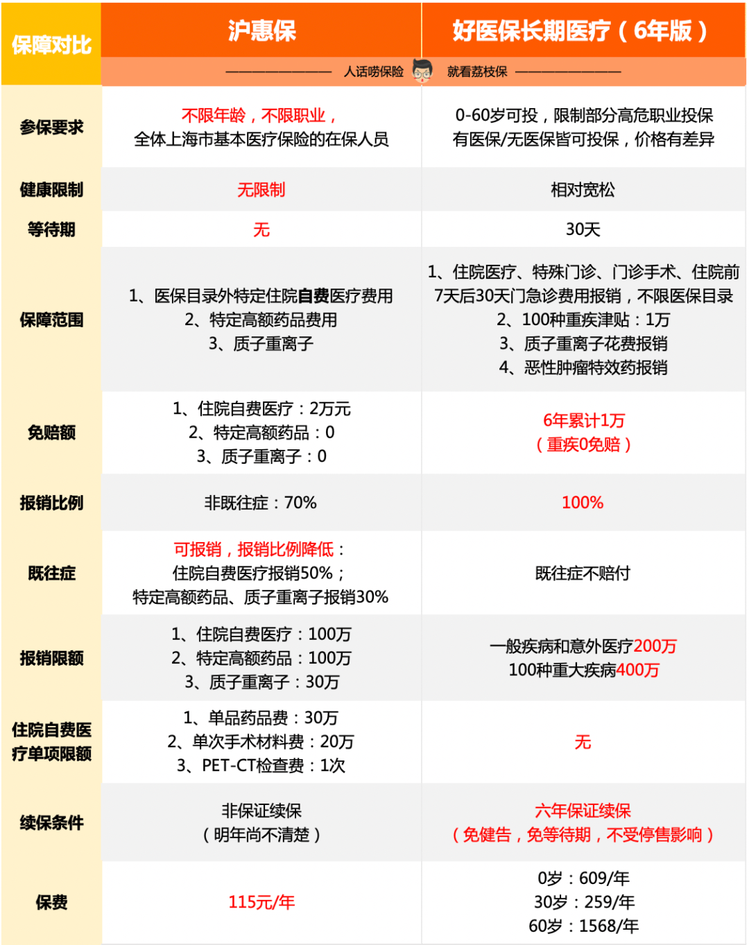 其實認清了它跟好醫保各自的特點,我們對號入座、按需配置就行了。