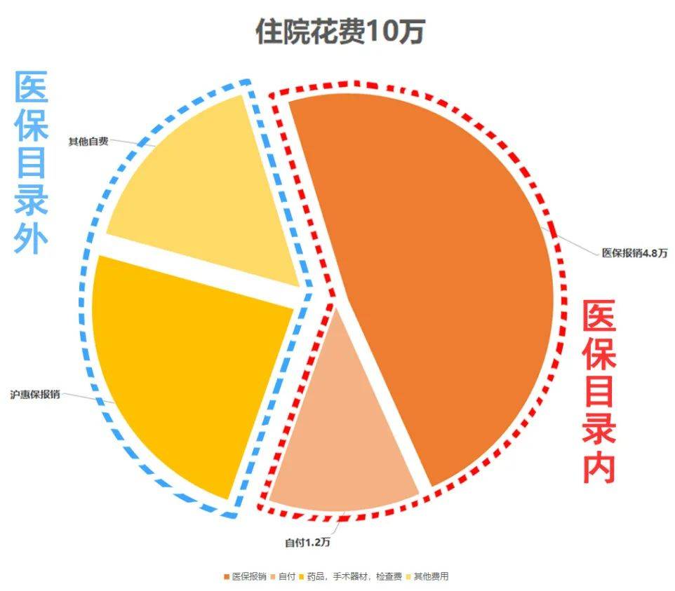 比如住院花了10萬塊,當中有6萬屬於醫保目錄內的,4萬屬於自費花費。