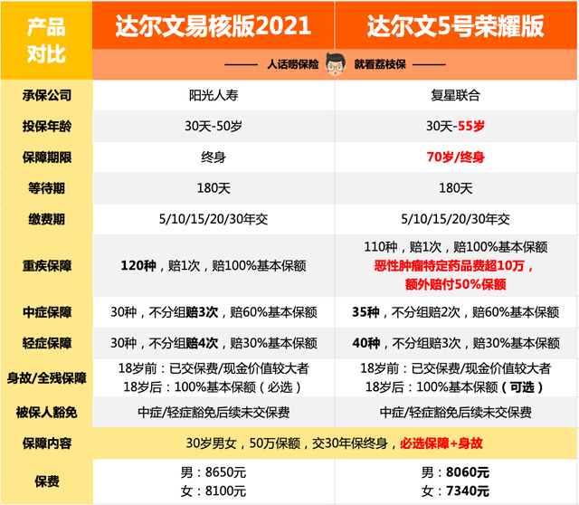 從保障的框架來看,達爾文5號榮耀版跟易核版是最接近的。
