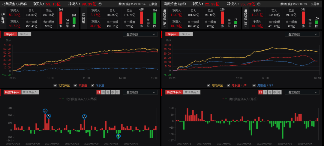 重點是港仔止住流出,全天淨買入53億,滬市占50億,因此白酒醫藥等核心資產大漲。