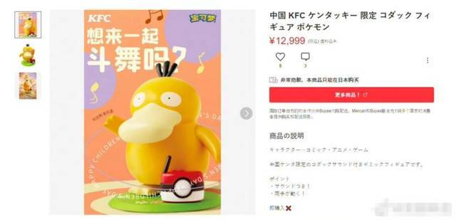 從其小程序可查詢到,購買59-109元不等的指定套餐即可獲得隨機一款寶可夢聯名玩具,可達鴨即為其中一款。肯德基可達鴨音樂盒也登上了國外網站的熱搜,日本很多二次元網站中都有可達鴨的視頻,還有不少日本寶可夢粉絲在…