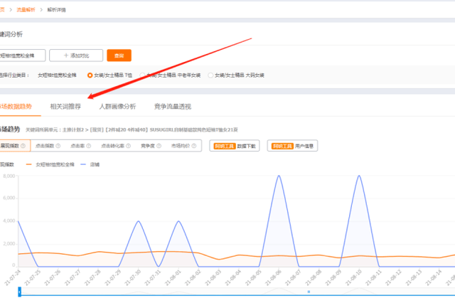 那麼拓展關鍵詞的渠道也是相對來說比較多的,我們可以通過主搜下拉詞表來做拓展關鍵詞,同時還可以直接在直通車中點擊這個關鍵詞,進入到流量解析下載對應的詞表。我們很多時候會發現,如果把某個關鍵詞加入到我們寶貝的推廣…